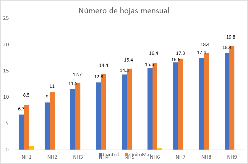 Se aprecia que a partir de la aplicación del Quitomax® la diferencia entre los dos tratamientos se presenta, por lo que existieron diferencias significativas en las evaluaciones posteriores realizadas.