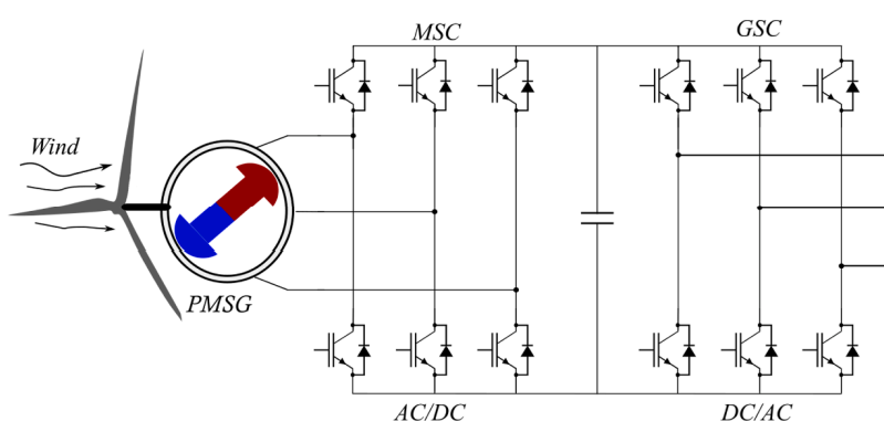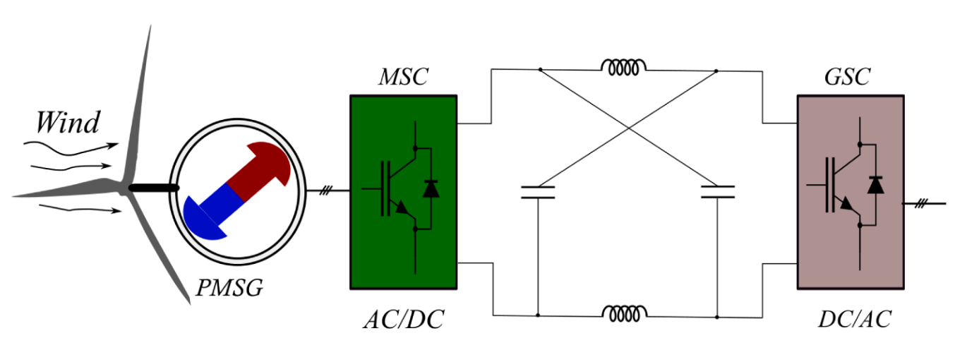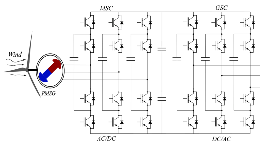 Key words: Back-to-back converters; diode rectifiers; full converters; grid integration; matrix converters; multilevel converters; nine-switch converters; PMSG; six-switch converters; type 4 wind turbine generators; Vienna rectifiers; wind turbines; Z-source converters.