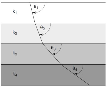 Figura 1. Rayo refractado a través de varias capas contiguas. (Corregidor, 2020)