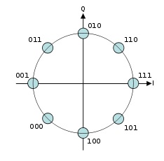 Figura 2. Constelación de 8PSK con codificación Gray. (Córdoba González,