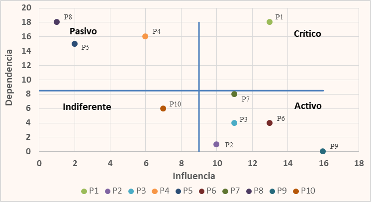 Una vez confeccionada la matriz DAFO donde se identificaron los problemas (debilidades), se procedió a la jerarquización de estos, empleando para ello la Matriz de Vester, la cual nos permitió la identificación del problema más crítico, así como la interacción de dependencia entre las variables seleccionadas y el grado en que cada variable afecta a las otras (González, 2003).