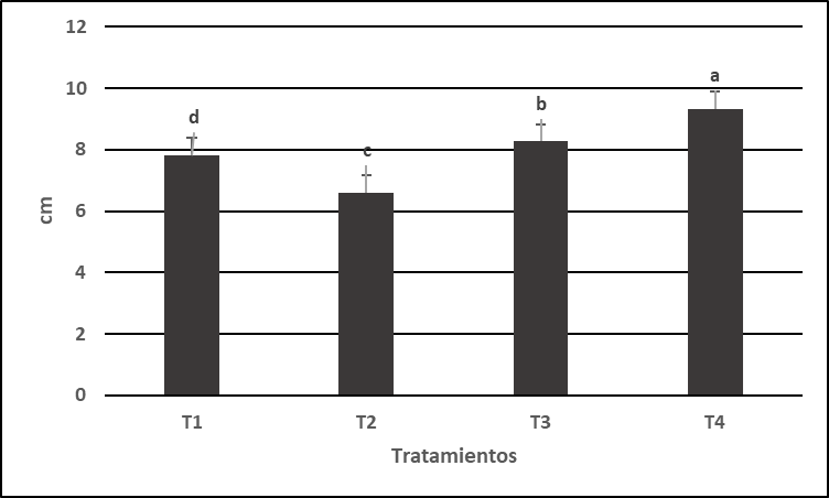 Figura 2. Efectos de los tratamientos sobre la distancia entre nudos