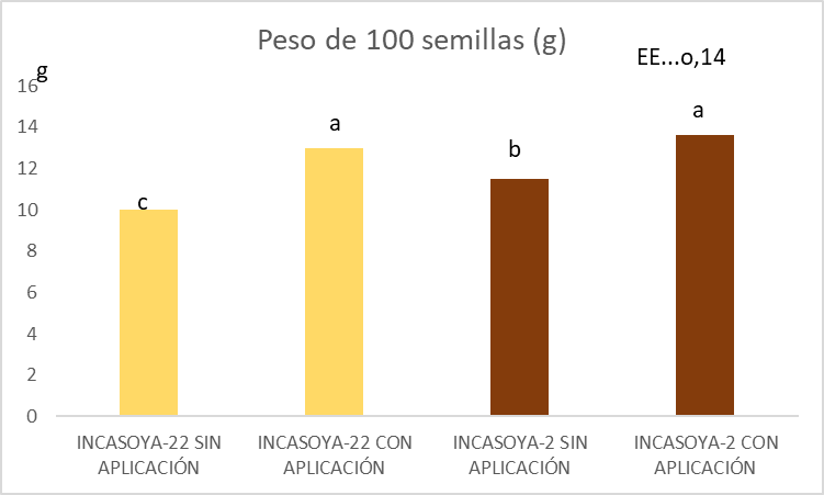 | Variedad INCASOYA-22 con aplicación | 18,6 | 28,5 ab | 30,0 b |