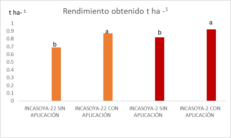 | Variedad INCASOYA-22 con aplicación | 7,0 b | 4,2 b |