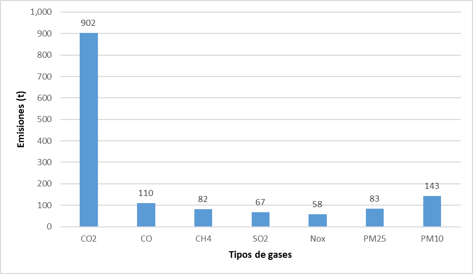 En este estudio se estimaron cinco gases y dos partículas, escogidos por ser de los que más influyen en el efecto invernadero y en la contaminación del aire respirable por los seres vivos, especialmente el hombre. Los gases analizados fueron Dióxido de Carbono (CO2), Monóxido de Carbono (CO), Metano (CH4), Dióxido de azufre (SO2) y Óxidos de Nitrógeno (NOx). Mientras que los aerosoles se relacionan con el Material Particulado (PM), específicamente PM1.0 y PM2.5.
