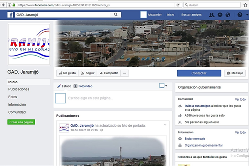 Figura 1: Observación de medios digitales del municipio de Jaramijó. Fuente: Fanpage oficial de Facebook del Municipio de Jaramijó.